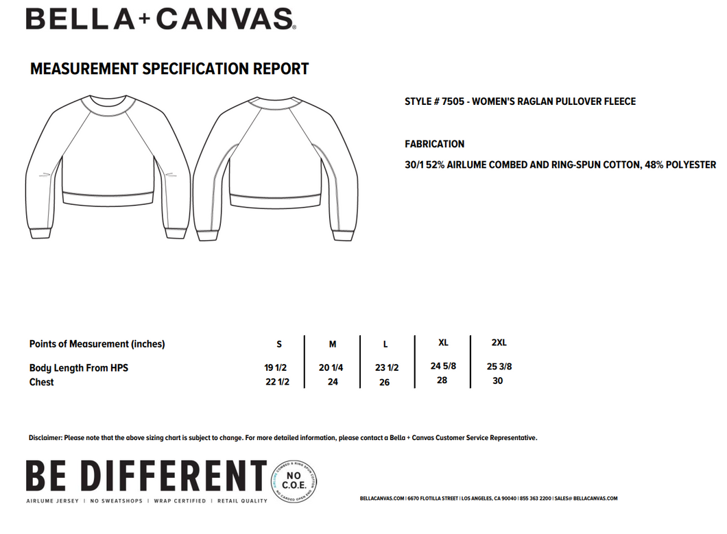Bella+Canvas Womens Cropped Raglan Pullover Fleece