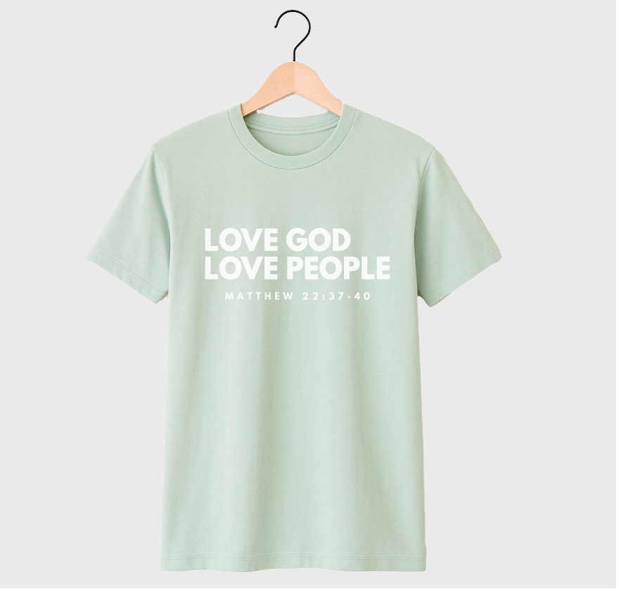 LOVE GOD LOVE PEOPLE - UNISEX TEE (DUSTY GREEN)